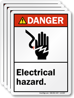 It is important to mark areas and equipment associated with electrical hazards. Use our durable Electrical Hazard Labels and Signs to warn employees and visitors in your facility against all possible electrical hazards and make your facility a safe haven. These bold and effective labels and signs reinforce compliance and can be life-saving at times.