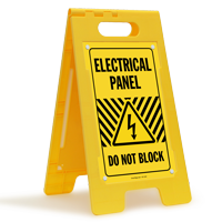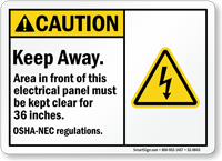 • • Do Not Block Electrical Panel Signs, Electrical Panel Keep Clear Signs - OSHA section 1926.403 clearly indicates to keep a minimum clearance of 30" to 48" around the electrical panel.